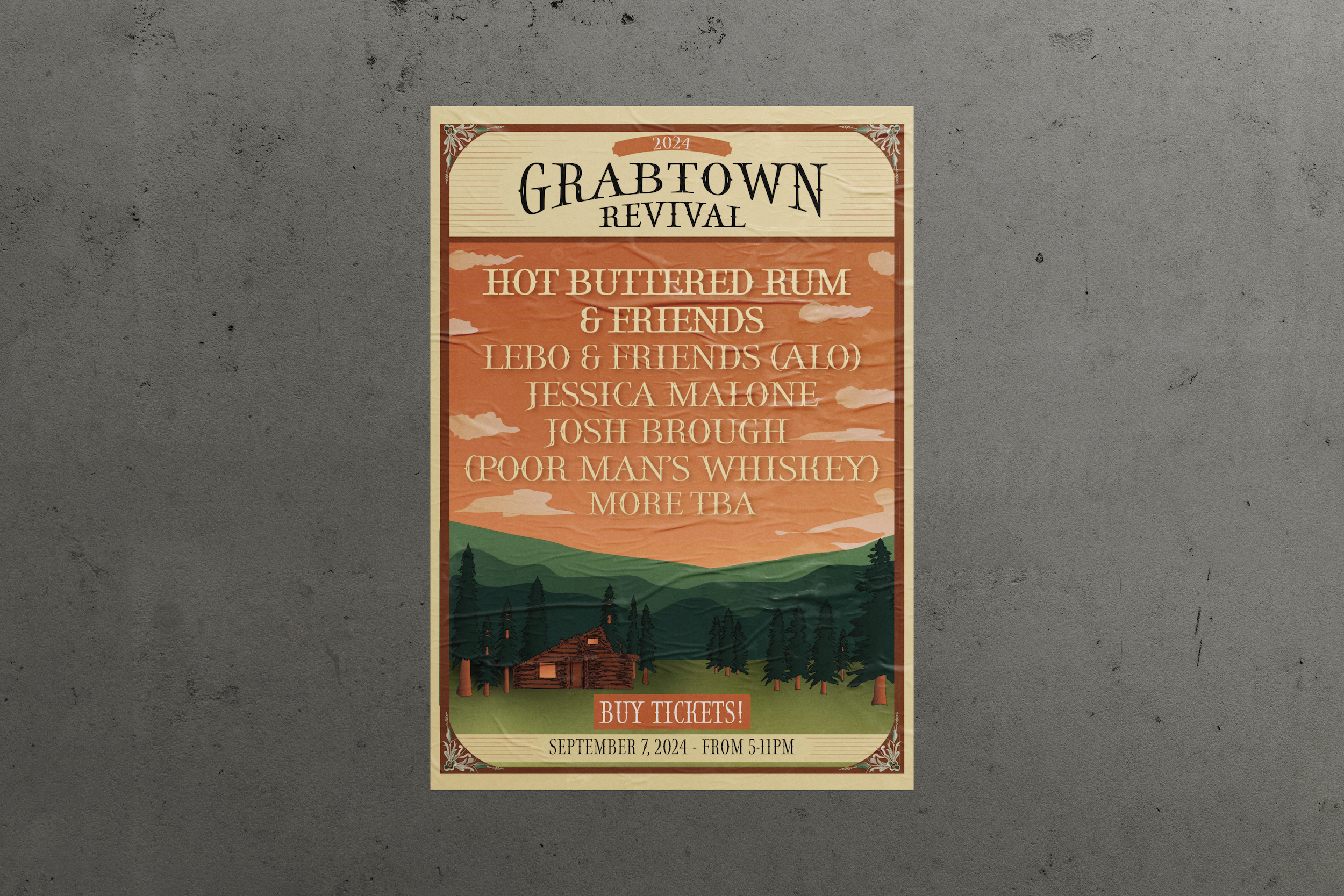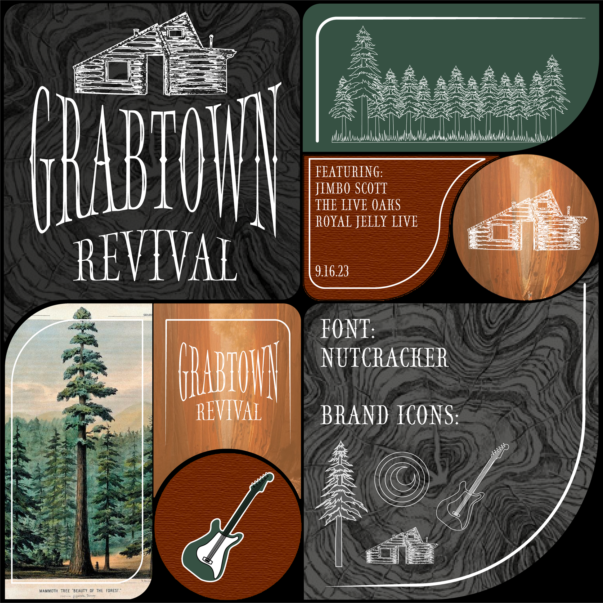 Create a brand identity for a local music festival. Incorporate the rich history of Grabtown with a funky 70s vibe, which encapsulates the vintage feeling with the modern music.